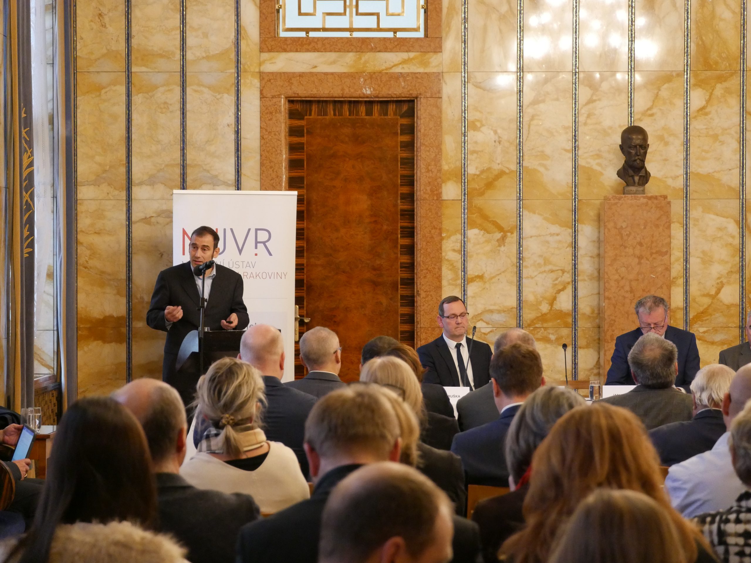 Vybrané výsledky pěti výzkumných programů NÚVR, které pokrývají celý inovační řetězec – tedy základní, aplikovaný a translační výzkum v onkologii – představil vědecký ředitel Jaroslav Štěrba. Jedním z nejviditelnějších přínosů byla identifikace nového podtypu akutní leukémie, tzv. CML-like disease (nemoci podobné chronické myeloidní leukémii), který je již součástí klasifikace WHO hematologických malignit. Podařilo se to týmu vědců z 2. LF UK a FN Motol pod vedením Jana Trky a Jana Zuny. Skupina Marka Mráze z CEITEC MU popsala nový slibný terapeutický cíl, FoxO1, umožňující prolomit rezistenci na ibrutinib u chronické lymfocytární leukémie. Jeho blokáda totiž vyvolává apoptózu CLL buněk a posiluje účinek BTK inhibitorů. Týmy z pražského uzlu NÚVR okolo Zdeňka Kleibla a Libora Macůrka vyvinuly platformu pro funkční testování CHEK2 missense variant, jež dokáže z většiny variant nejasného významu udělat použitelný biomarker rizika, protože odliší skutečně patogenní varianty se zvýšeným rizikem karcinomu prsu. Jaroslav Štěrba zmínil také prospektivní validační studii, jejímž cílem je ověřit nově identifikované biomarkery rakoviny plic v dechovém kondenzátu pro diagnostiku plicních uzlů. V případě, že se je týmu Mariána Hajdúcha z ÚMTM a FN Olomouc podaří prokázat, mohou diagnostikovat rakovinu plic srovnatelně s CT, a to rychlou a neinvazivní metodou, která bude schopna rakovinu plic diagnostikovat včas a výrazně zvýšit pravděpodobnost úplného vyléčení této nemoci.