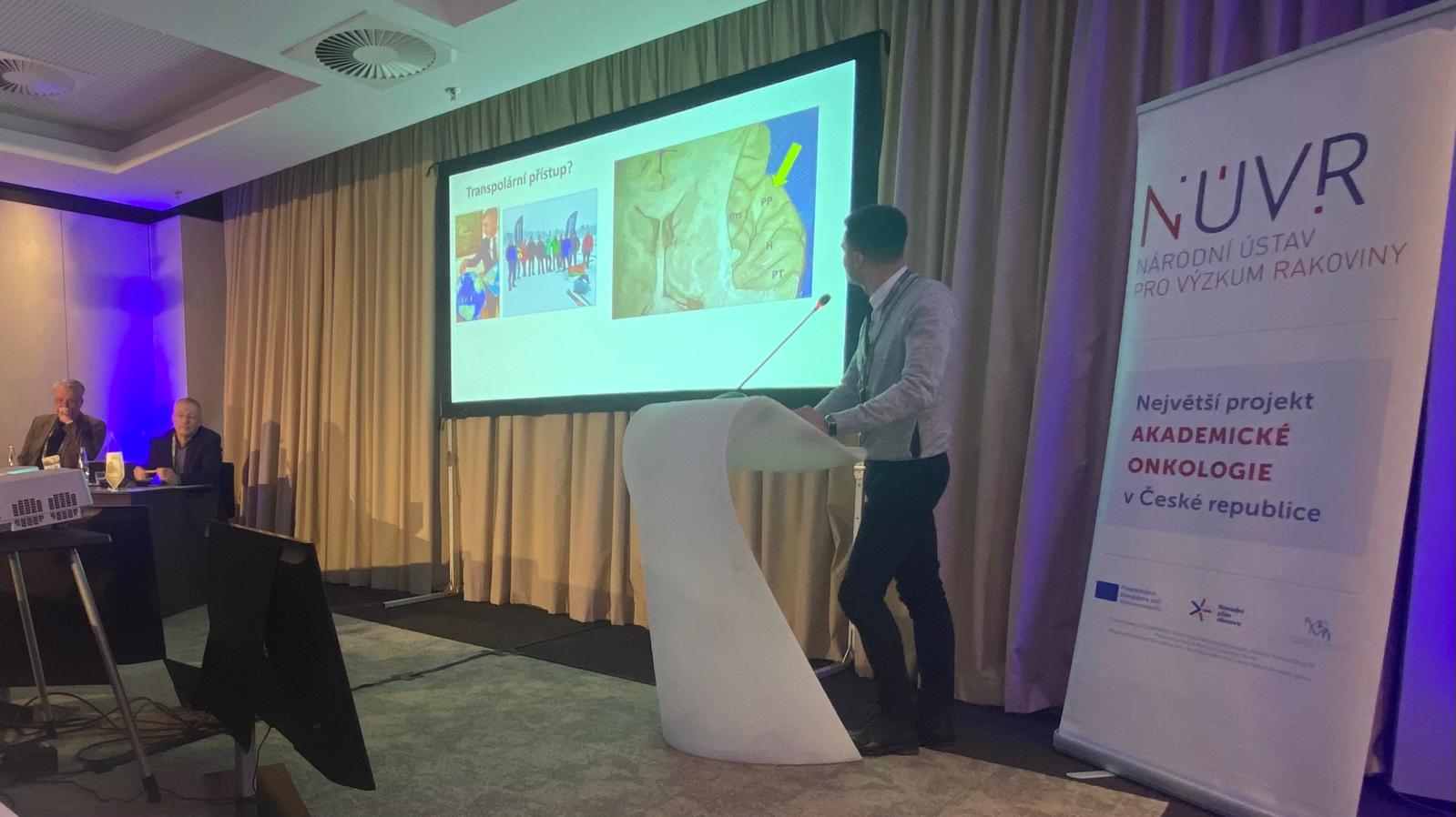 Odborný program nabídl průřez současnými tématy oboru – od pokročilé neurochirurgie přes moderní zobrazovací metody až po molekulární diagnostiku a experimentální výzkum nádorového mikroprostředí. Zazněly přednášky věnované resekčním strategiím u gliomů, komplikacím chirurgické léčby meningeomů, optimalizaci zobrazovacích postupů pro stereotaktickou radioterapii i novým poznatkům v oblasti molekulárního a epigenetického třídění nádorů CNS. Z oblasti výzkumu nechyběla přednáška Ivany Matrasové z Laboratoře biologie nádorové buňky ÚBEO 1. LF UK a NÚVR, která se zaměřila na roli mezenchymálních buněk v modifikaci extracelulární matrix nádorů mozku. Téma odráží jeden z klíčových směrů současného výzkumu v neuroonkologii – porozumění nádorovému mikroprostředí a jeho vlivu na invazivitu, rezistenci k léčbě a možnosti cílené terapie. Příspěvek současně ilustroval zapojení NÚVR do základního a translačního výzkumu, který má potenciál promítat se do budoucí klinické praxe.